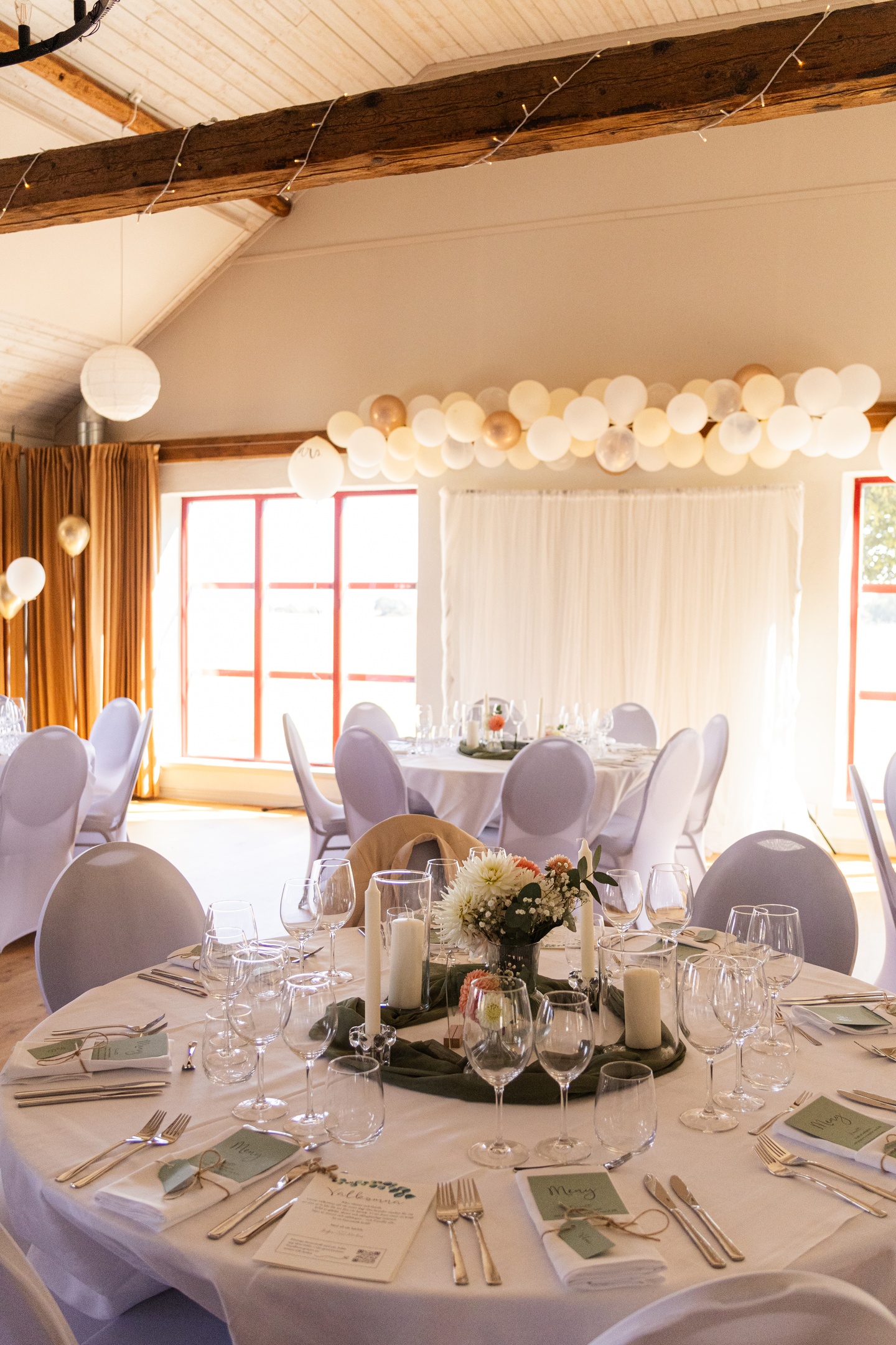 Med en modern inredning och lantlig charm, samt tillräckligt med utrymme för att rymma både middag och fest, erbjuder vi en plats där era visioner kan förverkligas. Oavsett om ni drömmer om en intim tillställning eller en storslagen fest, kan vi skapa den perfekta miljön för ert bröllop.